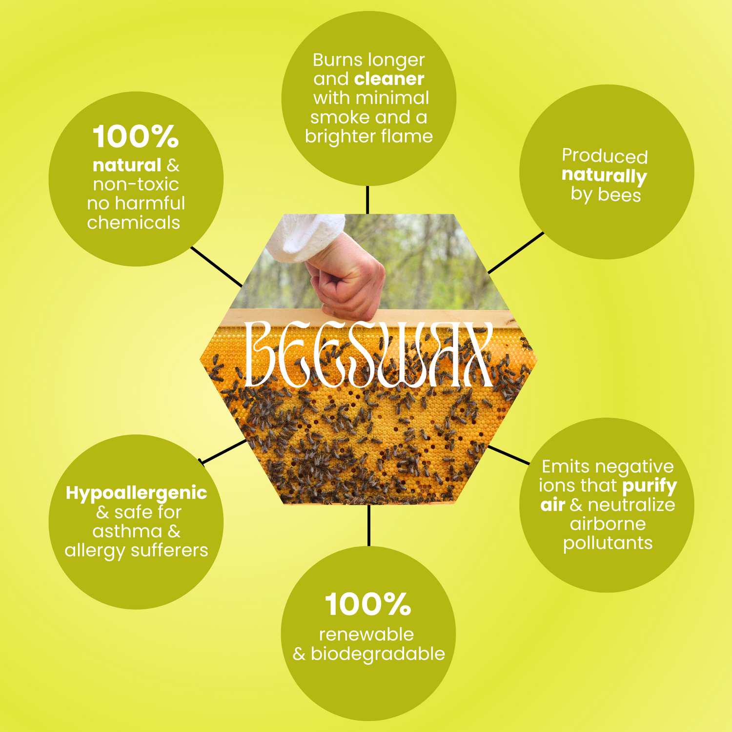 100% beeswax, hemp wick